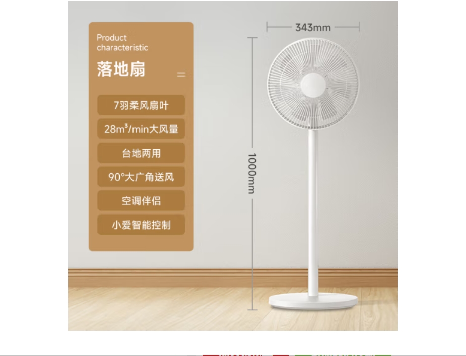 云栖漫心 米家 小米电风扇 落地扇 实验室换风 散热 办公室换风 7羽叶 轻音 大广角 大风量 远风距 台地两用 远程智能控制 AI语音控制
