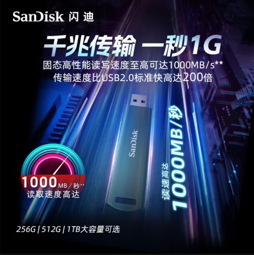 云杉生物 闪迪(SanDisk)256GB 512GB 1TB USB3.2 固态U盘CZ900 读写速度高达1000MB/s 大容量安全加密优盘 赠数据恢复软件