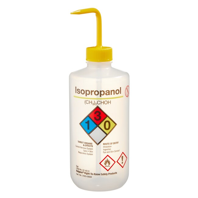 耐洁Nalgene™ LDPE窄口易认洗瓶.异丙醇标签.易认安全洗瓶.500ml容量.黄色盖