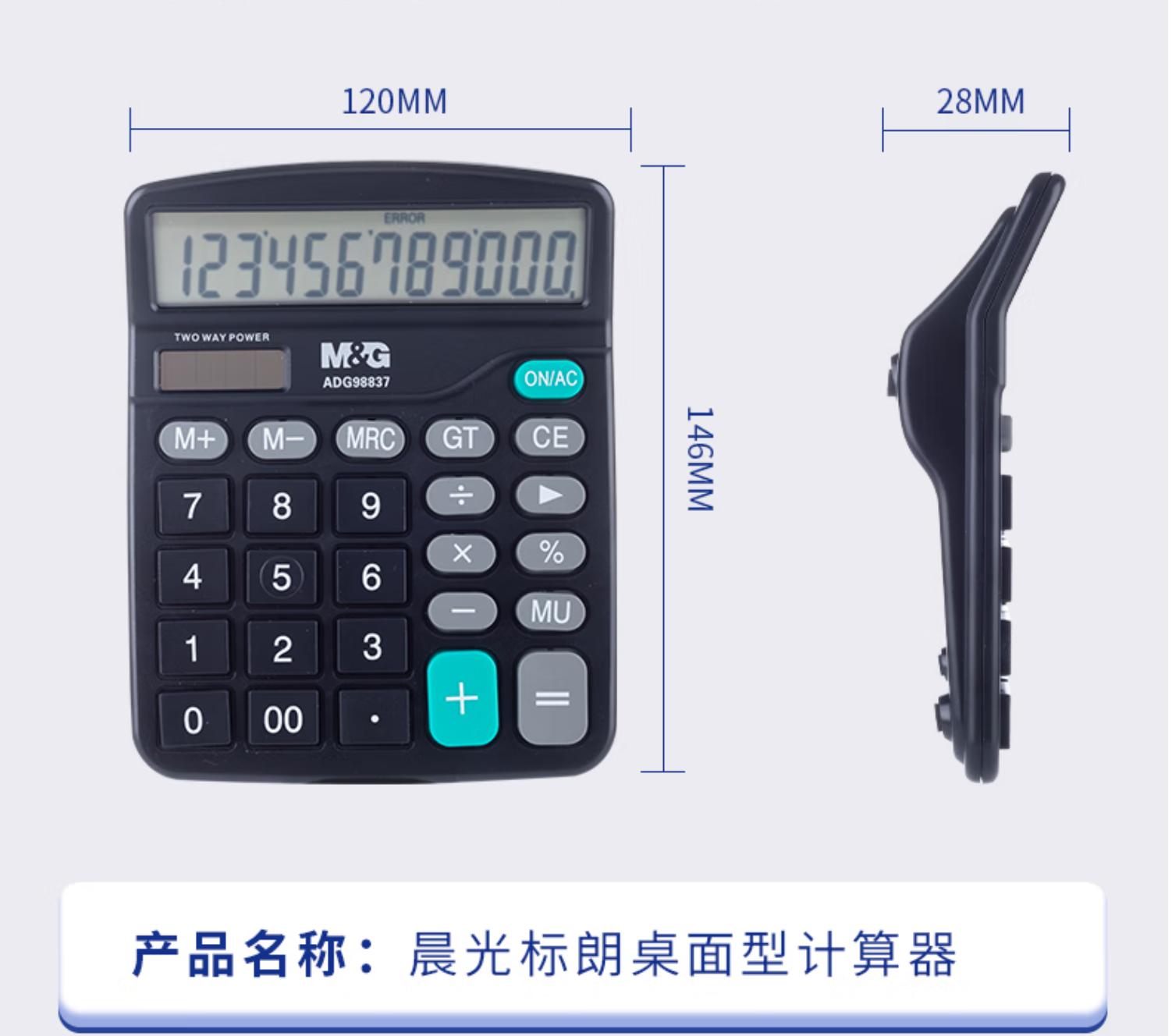 双电源计算器 太阳能桌面计算机12位大屏幕计算器
