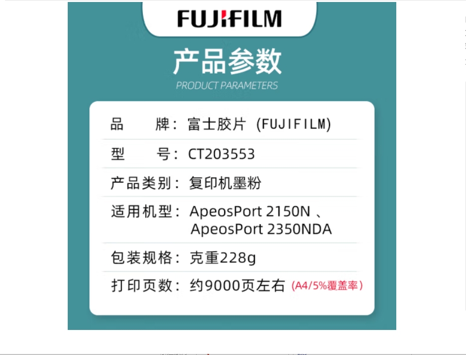 云栖漫心 FUJIFILM富士施乐(Fuji Xerox)富士胶片2150N墨粉 粉盒 施乐2350NDA 原装 大容量 墨盒 CT203553墨粉 约印9000张