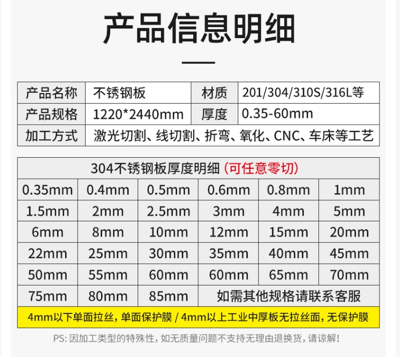 316L 304不锈钢垫板材3.0厚 304钢板2.0厚不锈钢板1.0厚长方形隔板 500*500*5