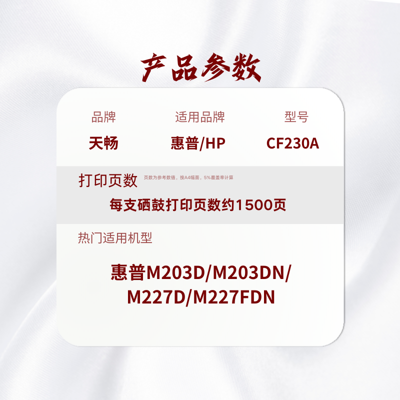 天畅CF230A粉盒适用于:惠普M203d/M203dn/M227d/M227fdn 易加粉带芯片 五支装(标准版 约打1500页)(定点采购)