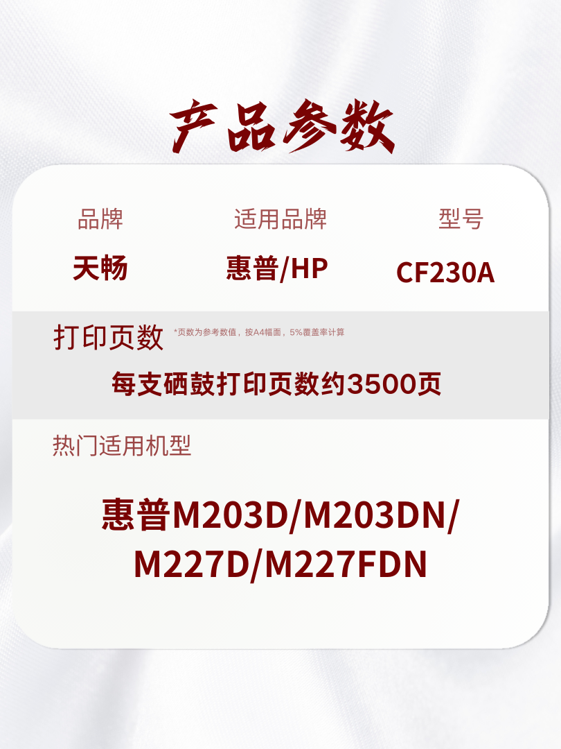 天畅CF230A粉盒适用于:惠普M203d/M203dn/M227d/M227fdn 易加粉带芯片 三支装(大容量版 约打3500页)(定点采购)