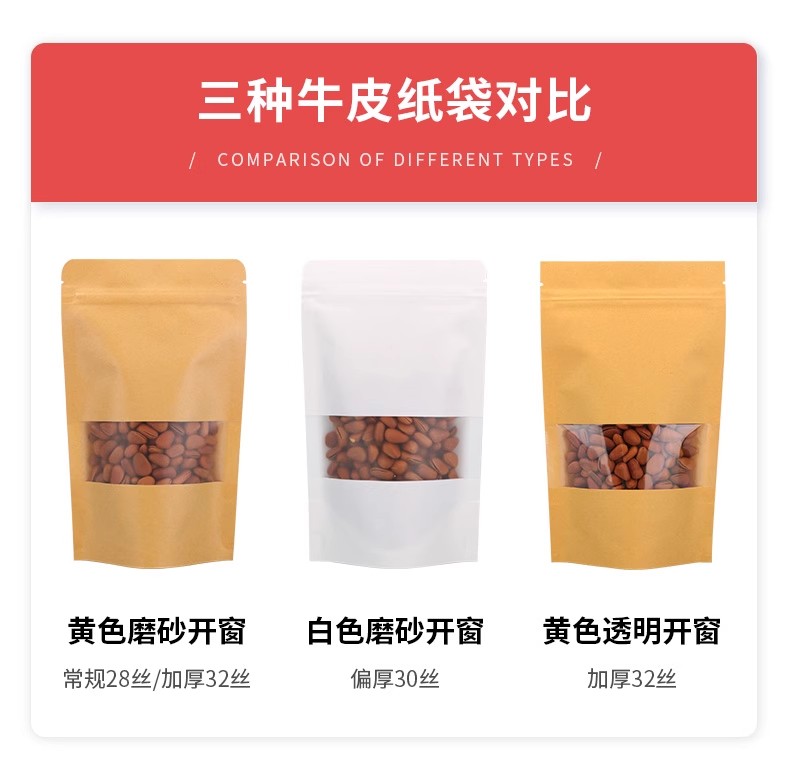 自立开窗牛皮纸袋自封袋 样品袋防潮袋32丝10只