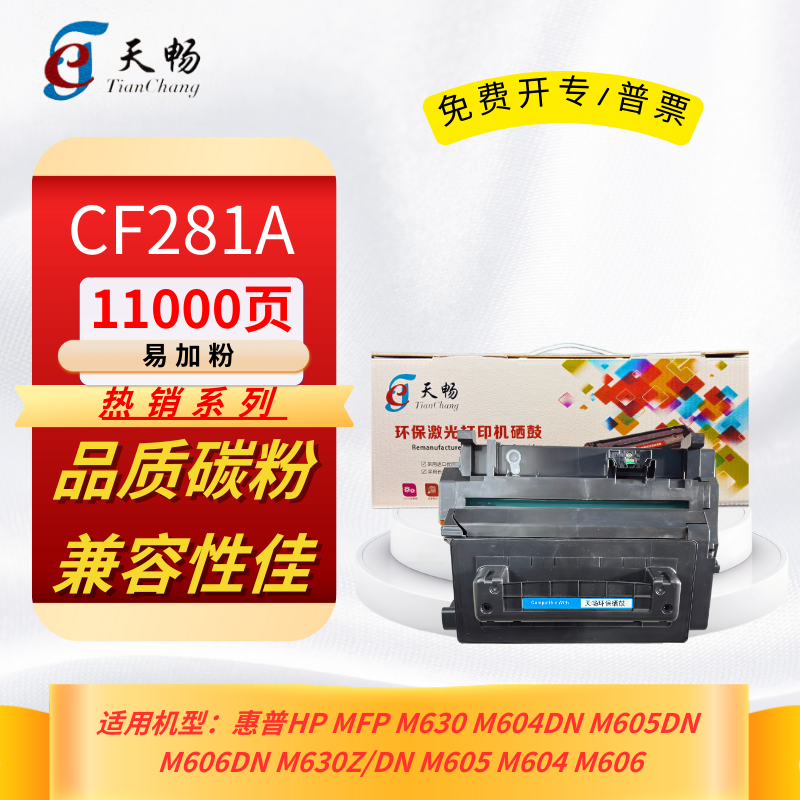 天畅CF281A黑鼓(易加粉带芯片) 适用于:惠普HP MFP M630 M604dn M605dn打印机 11000页 单支装(定点采购)