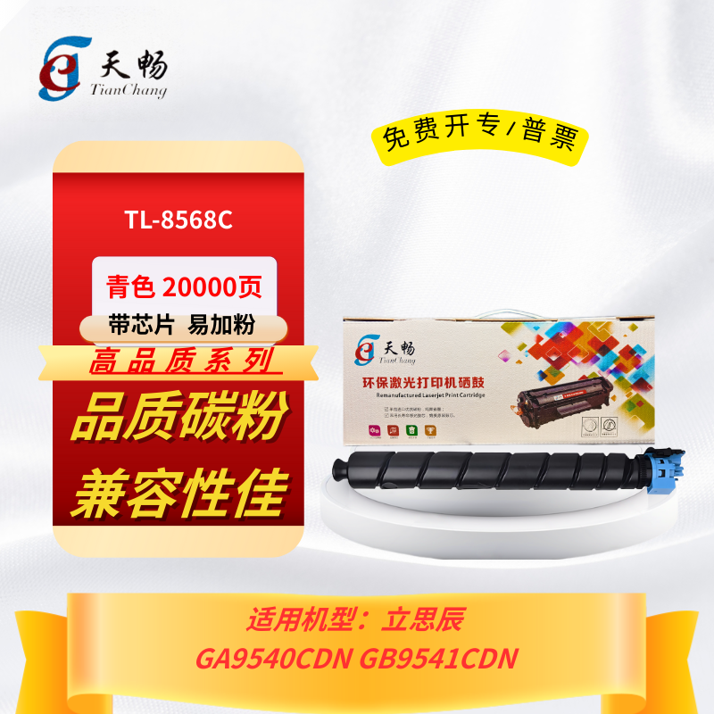 天畅TL-8568粉盒 适用于立思辰GA9540cdn GB9541cdn彩色多功能一体机 青色 20000页 单支装