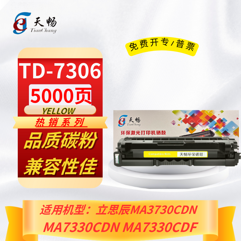 天畅硒鼓耗材TD-7306适用立思辰MA3730cdn MA7330cdn MA7330cdf打印机 黄色标准版5000页适用于立思辰打印机