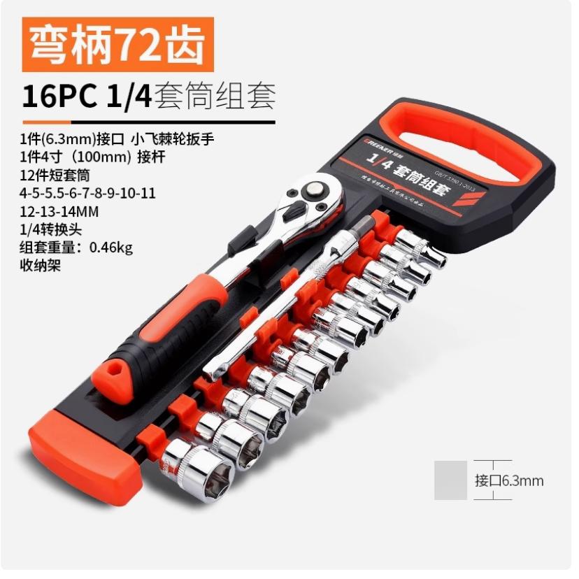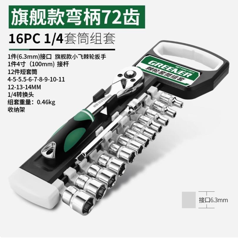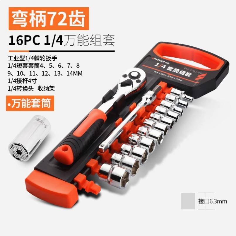 棘轮套筒扳手套装万能扳手多功能外六角快速扳手套管小飞弯柄72齿16件套