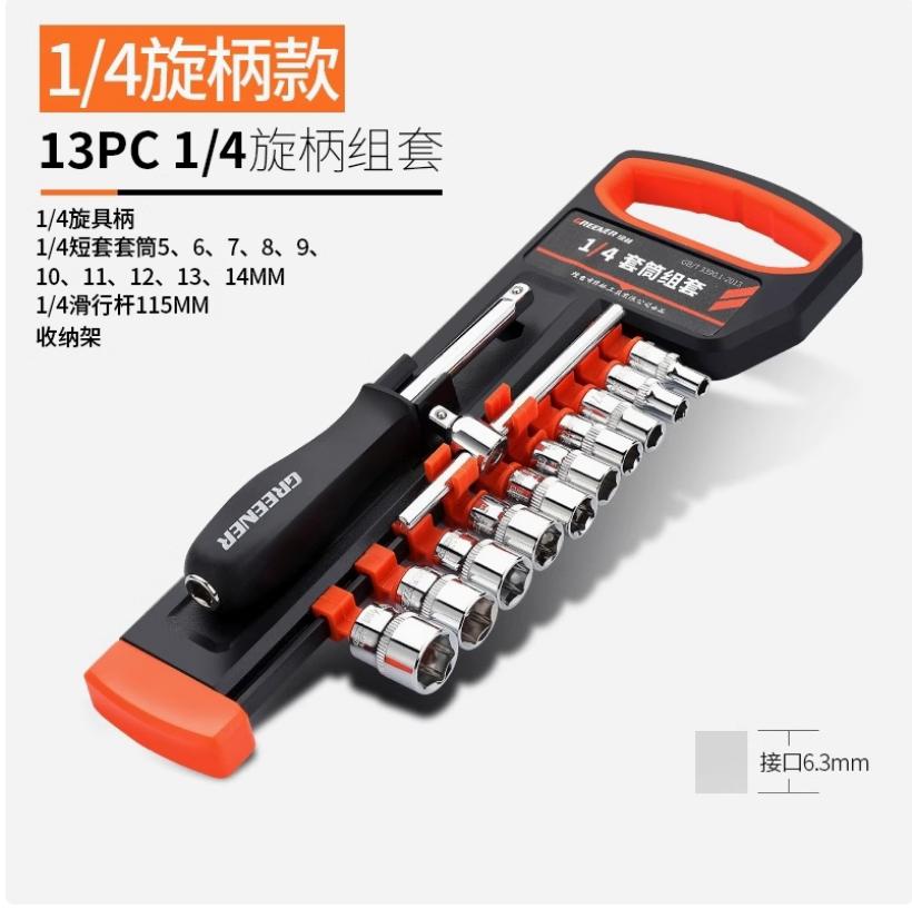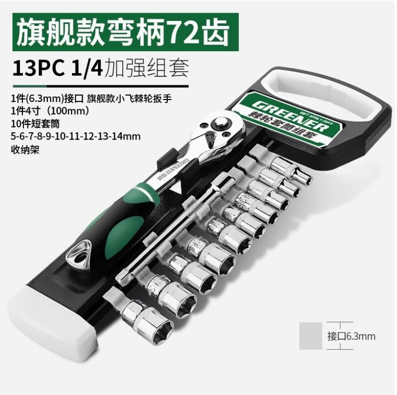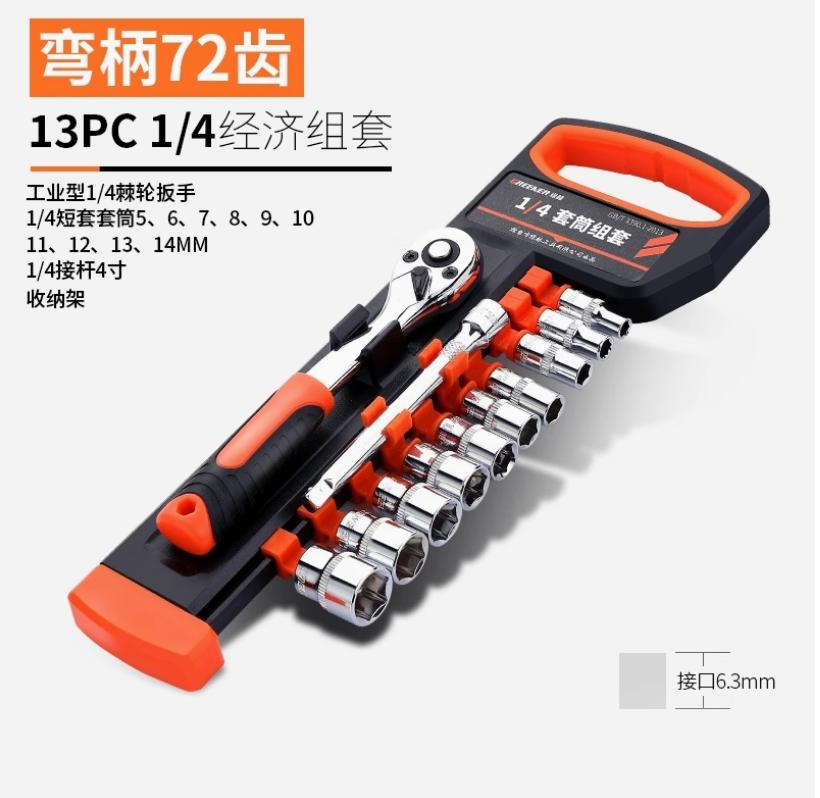 棘轮套筒扳手套装万能扳手多功能外六角快速扳手套管小飞旋柄13件套