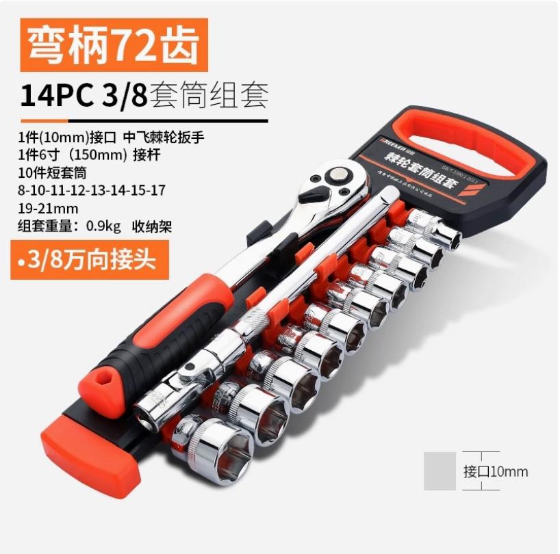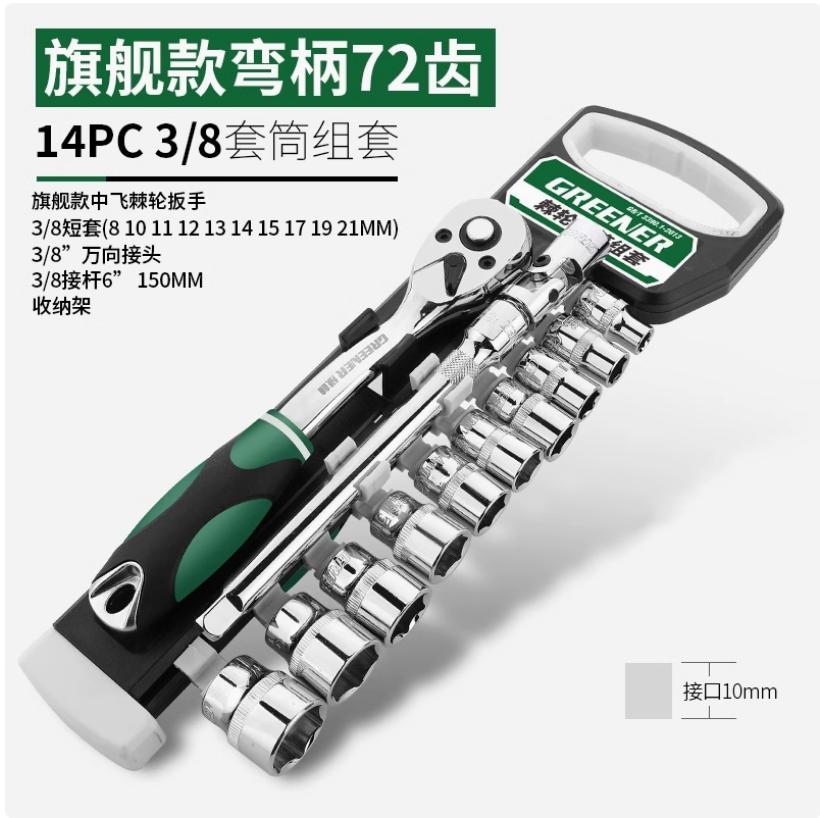 棘轮套筒扳手套装万能扳手多功能外六角快速扳手套管72齿3/8中飞14件套