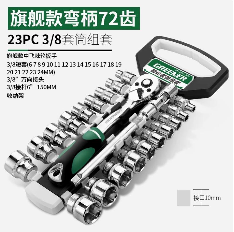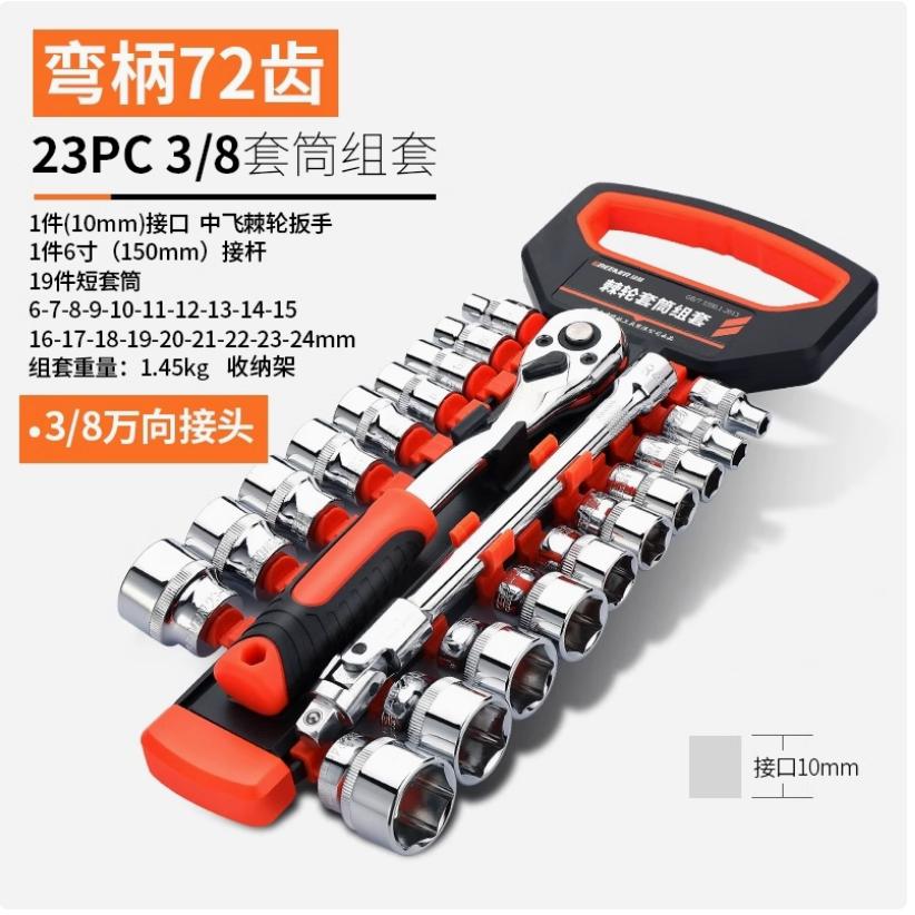 棘轮套筒扳手套装万能扳手多功能外六角快速扳手套管72齿3/8中飞23件套