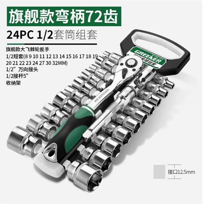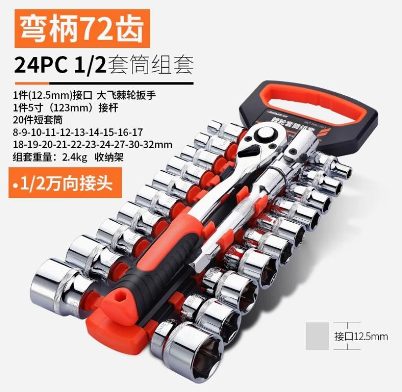 棘轮套筒扳手套装万能扳手多功能外六角快速扳手套管72齿1/2大飞24件套