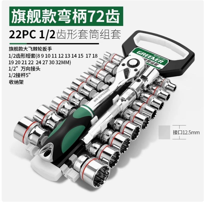 棘轮套筒扳手套装万能扳手多功能外六角快速扳手套管72齿大飞22件套