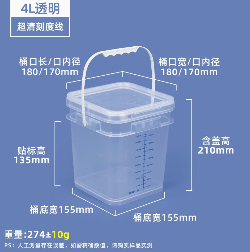 方形塑料桶大容量带刻度透明塑料桶医用消毒计量杯定量桶耐120℃