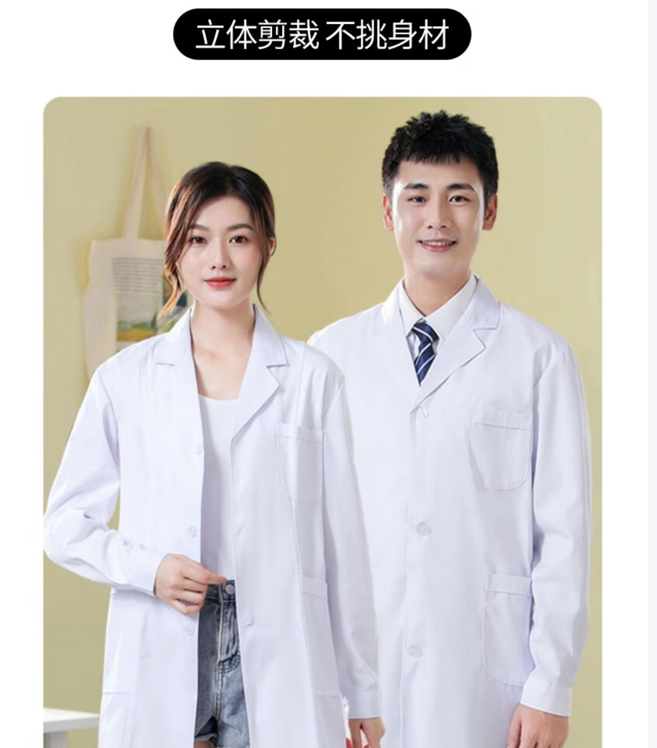 森淼办公 长袖白大褂 标准款 男女学生 化学实验用工作服 化工 医学院 纽扣长袖款