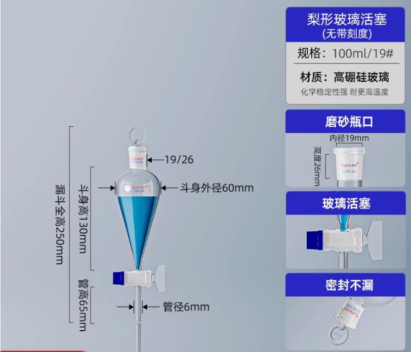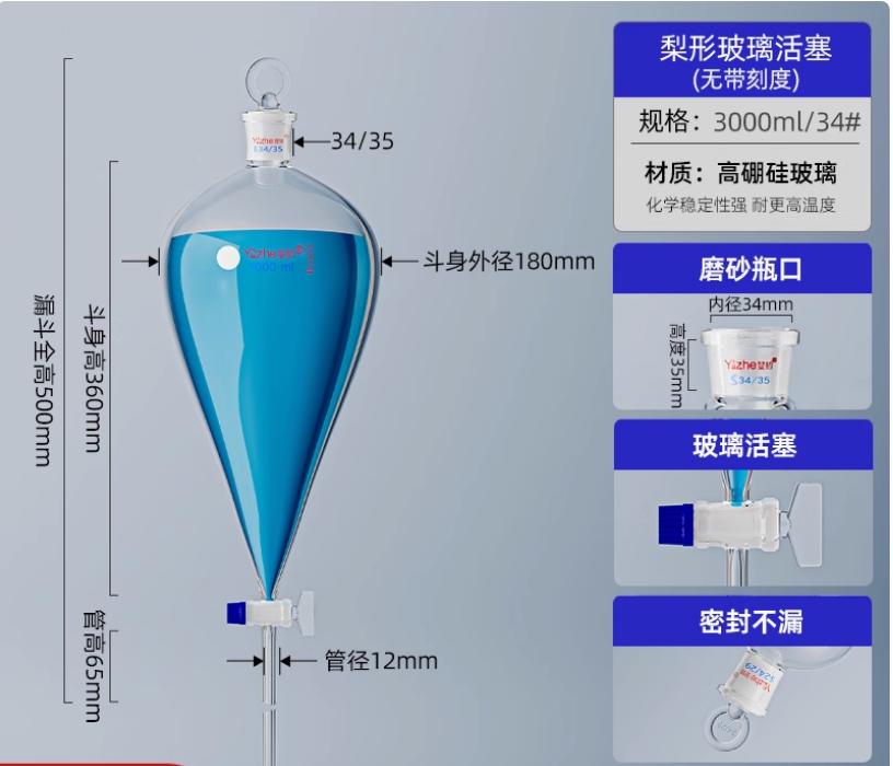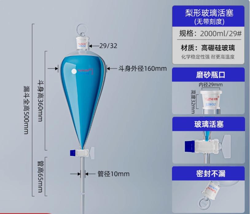 玻璃分液漏斗梨形分液漏斗锥形分液漏斗10ml-10000ml
