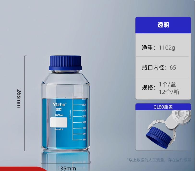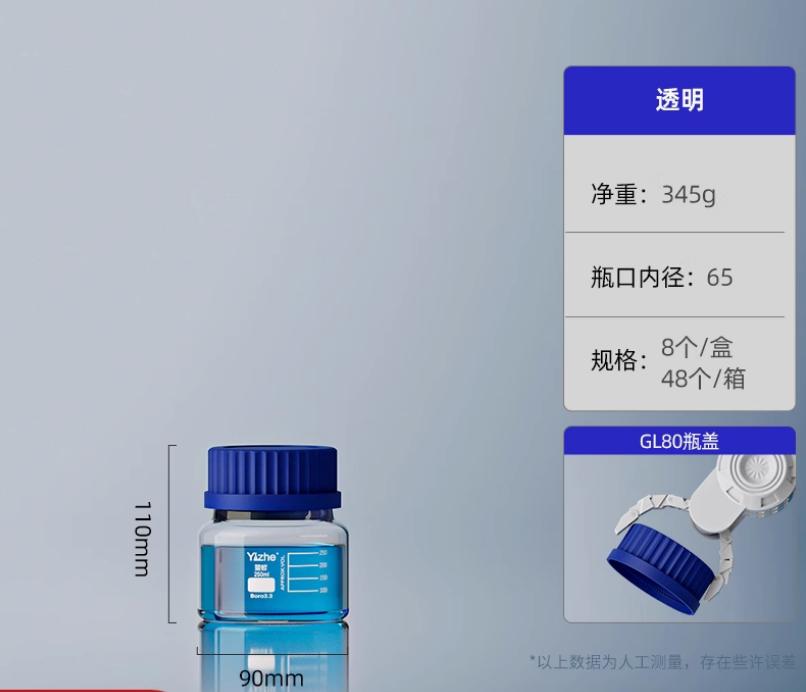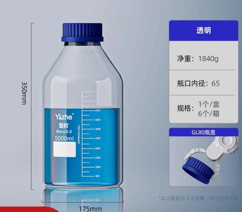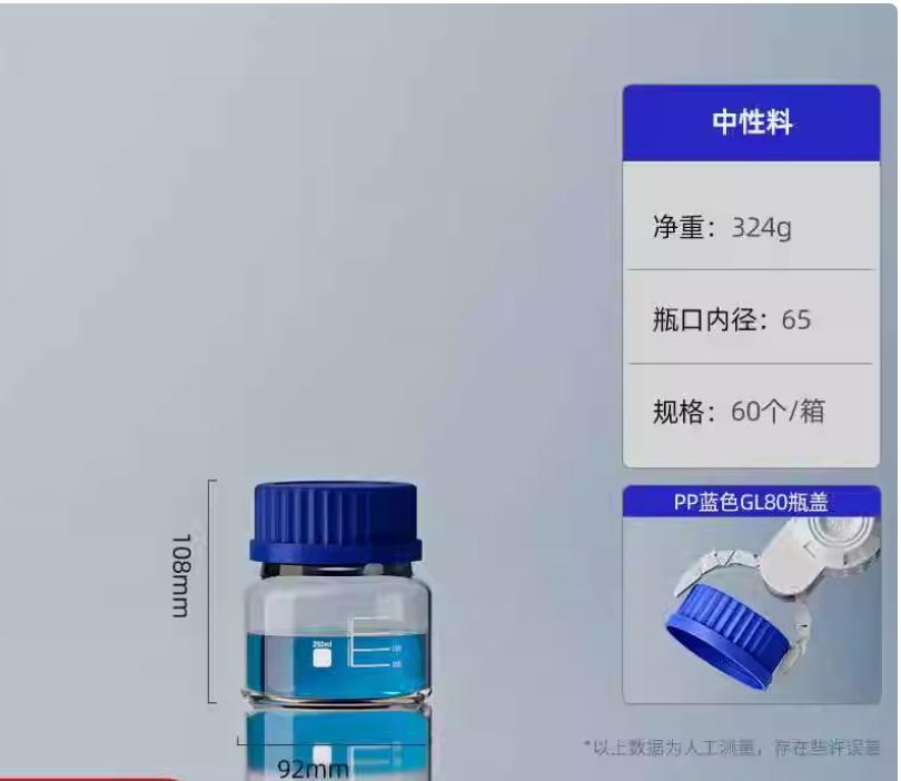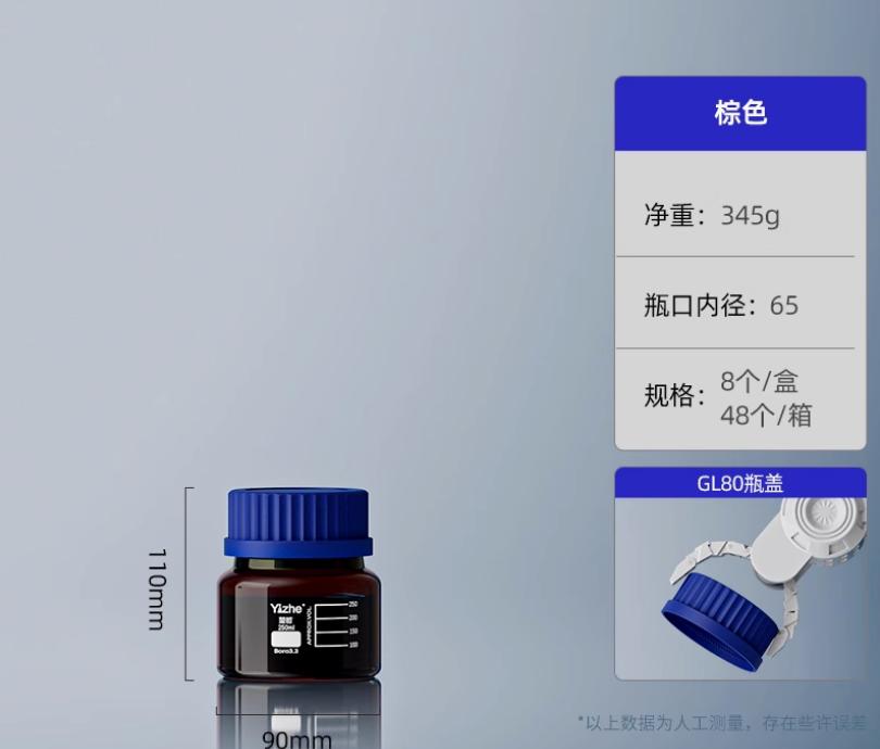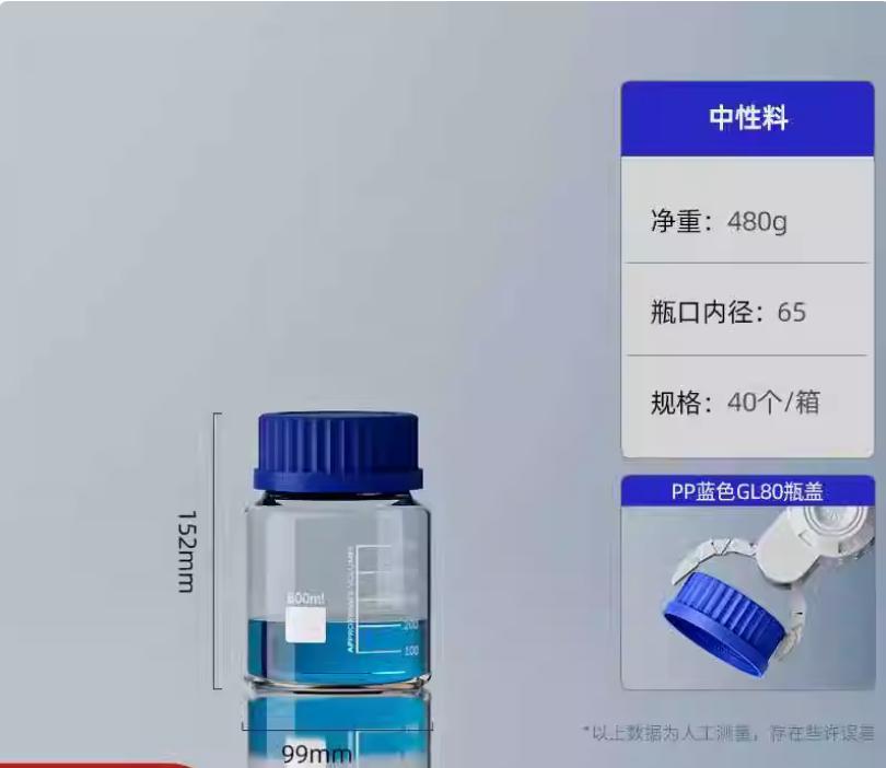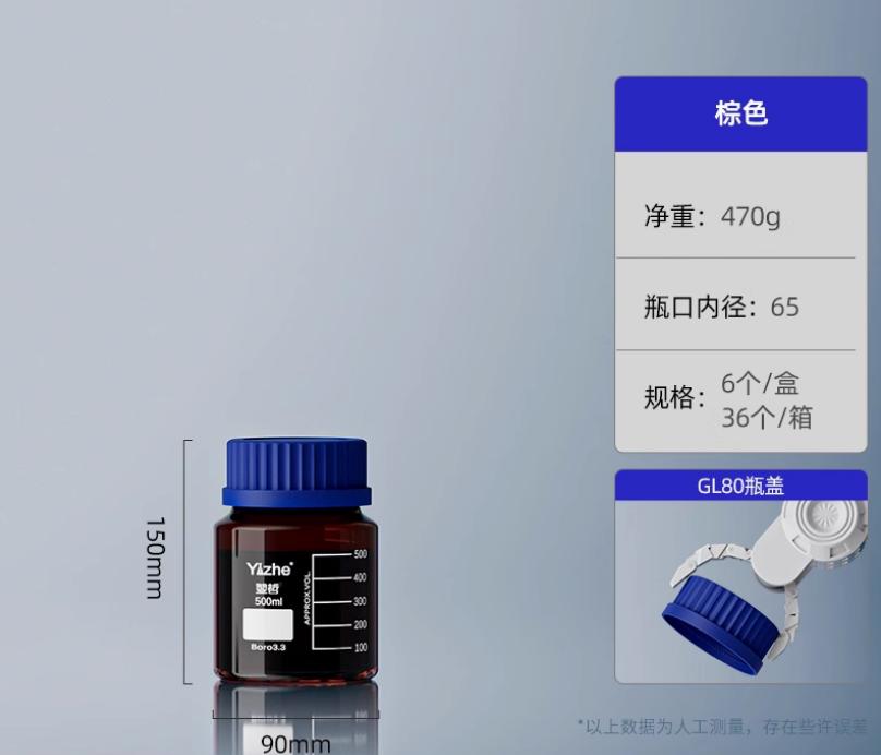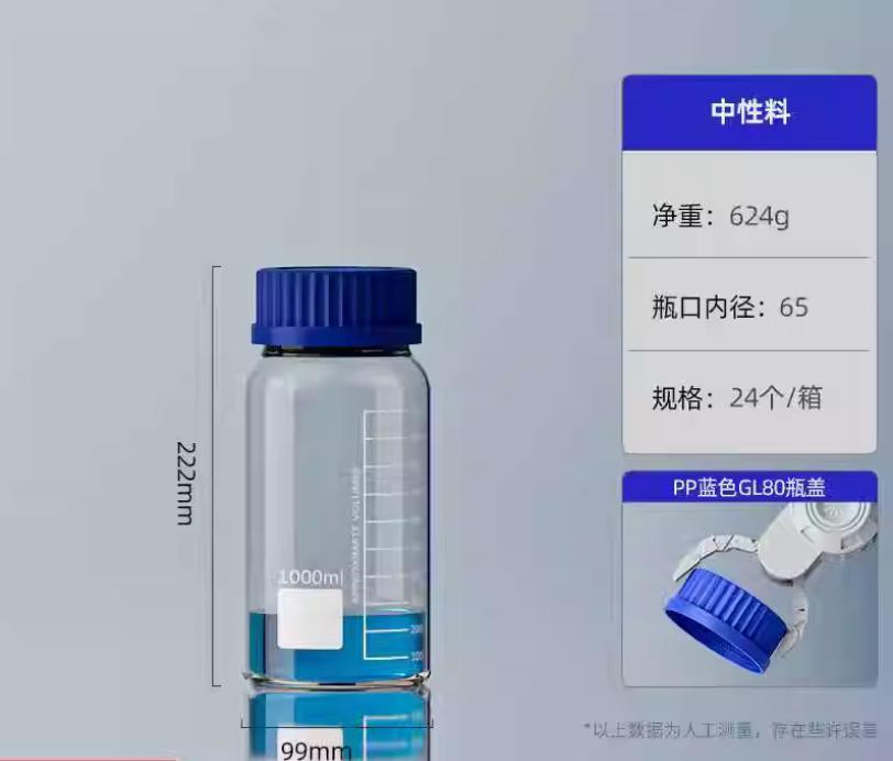 大口蓝盖试剂瓶玻璃样品瓶广口瓶棕色玻璃瓶采样瓶丝口螺口瓶化学试剂瓶250/500/1000ml