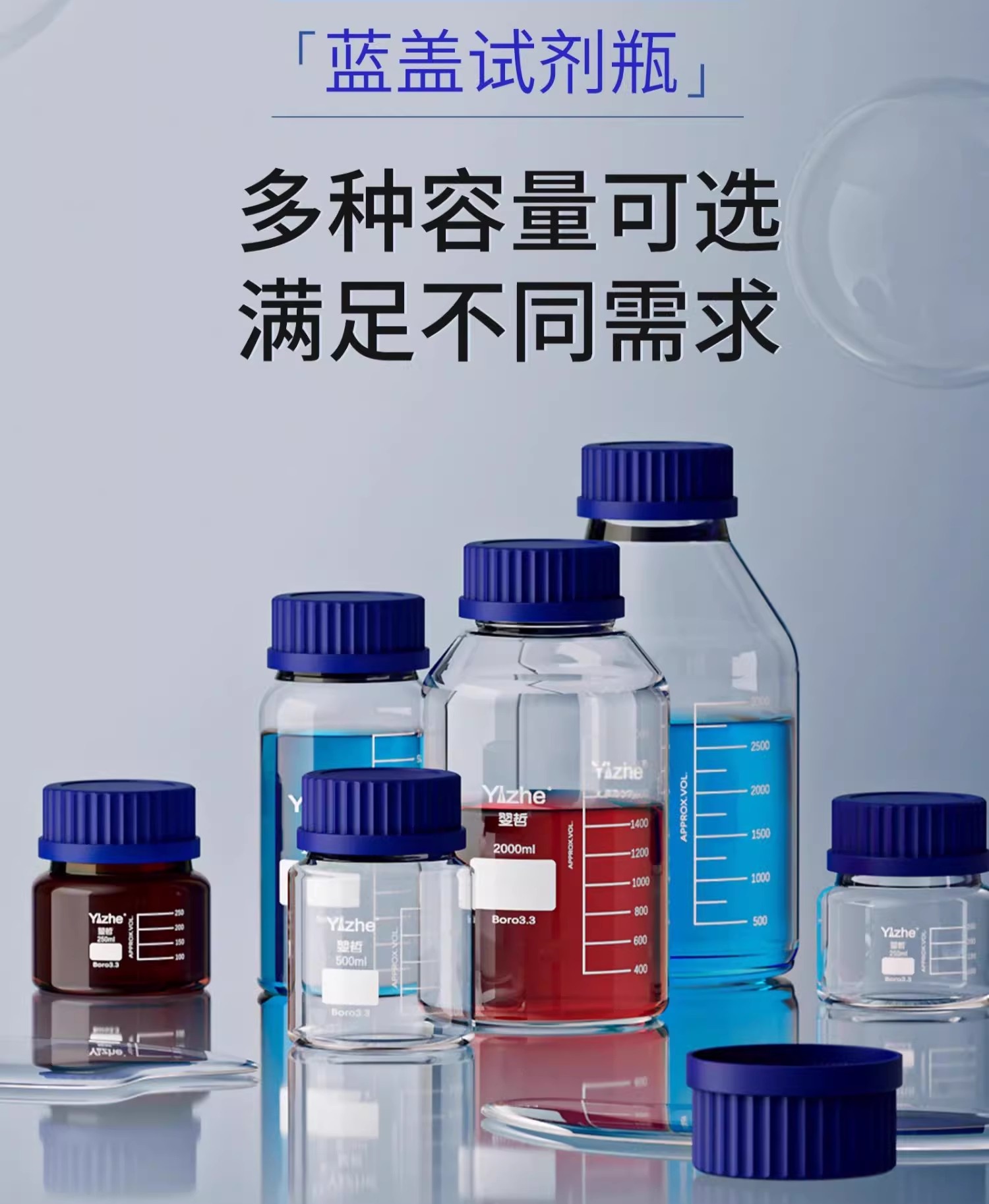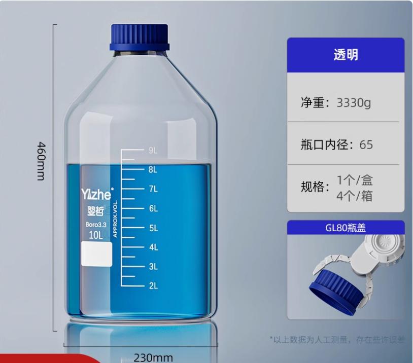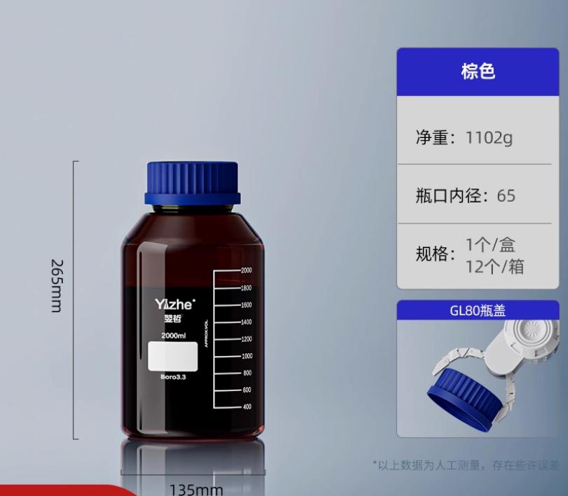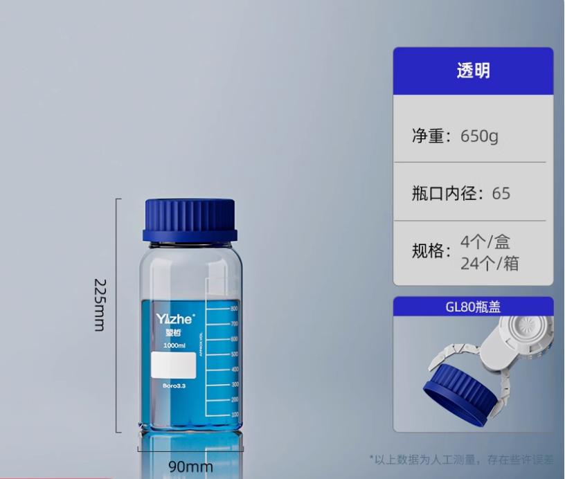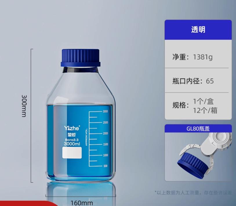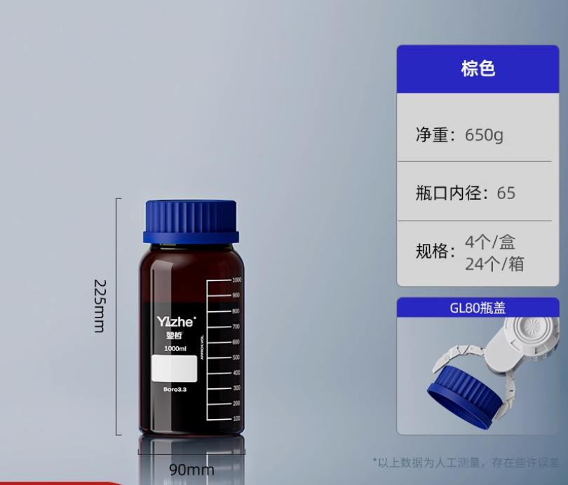 大口蓝盖试剂瓶玻璃样品瓶广口瓶棕色玻璃瓶采样瓶丝口螺口瓶化学试剂瓶250/500/1000ml