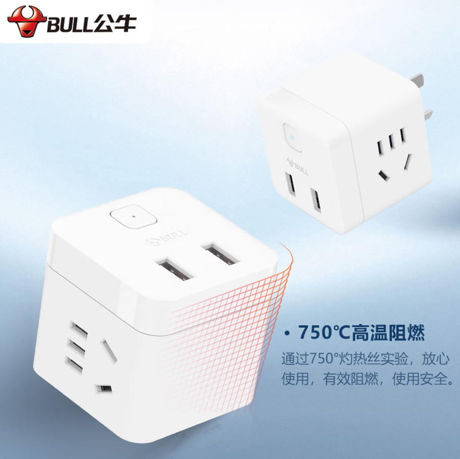 森淼办公 公牛(BULL)小魔方USB插座 插线板/插排/排插/接线板 2孔+2USB口 总控开关无线魔方 GNV-U9B122