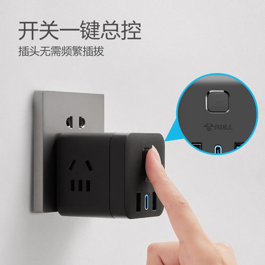 森淼办公 公牛(BULL) 快充魔方插座 USB插座/插排/排插/新国标接线插座 【C口20W快充 无线】黑色-UU220WH