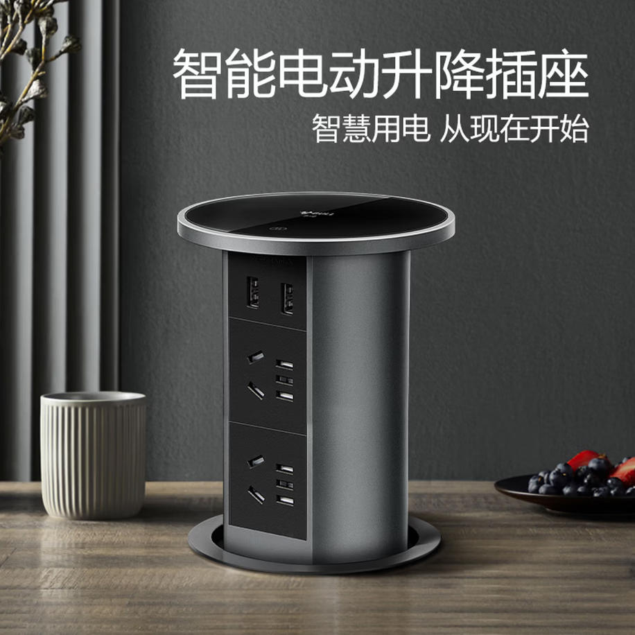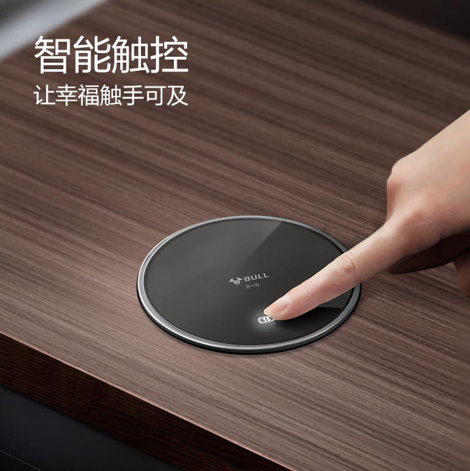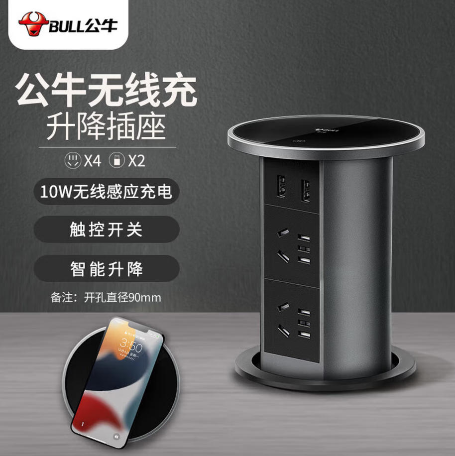 森淼办公 公牛(BULL)无线充 电动智能升降/隐藏式/嵌入式/多功能插座 会议室4位五孔+2USB+10W感应充电 黑色