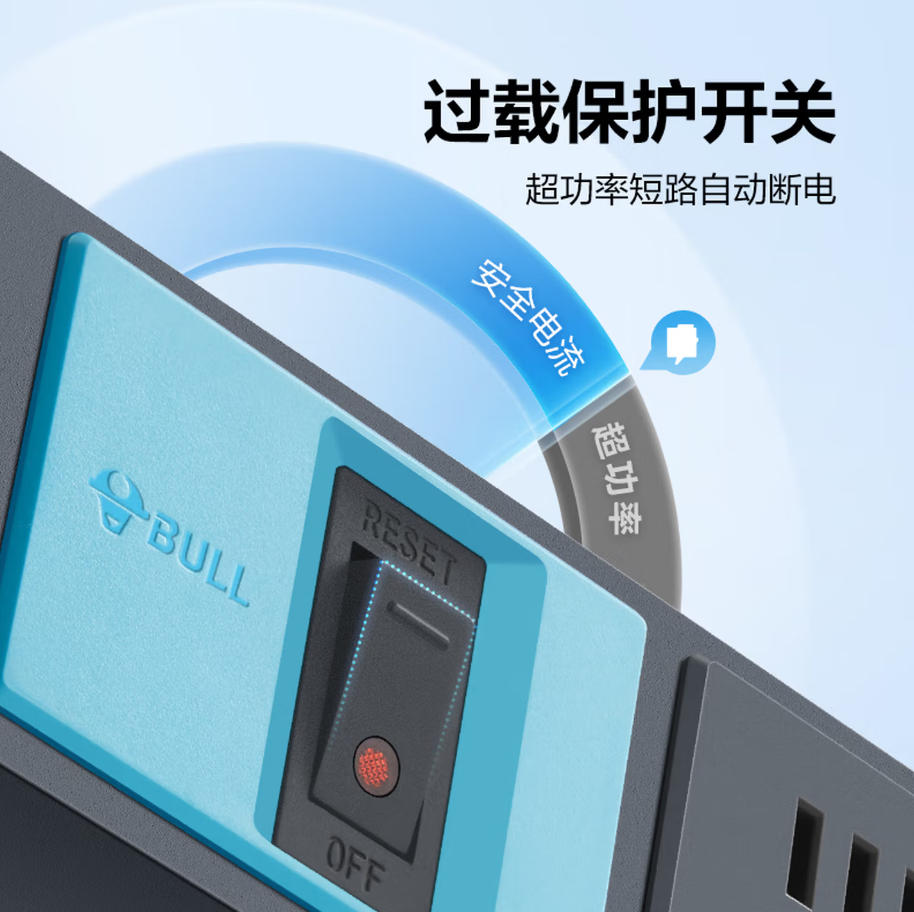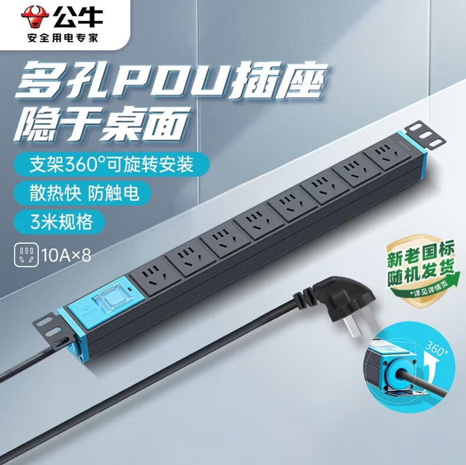 森淼办公 公牛(BULL)PDU桌面电竞机柜插座/插线板/插排/接线板 8位总控开关3米规格 新老国标混发1080/108E