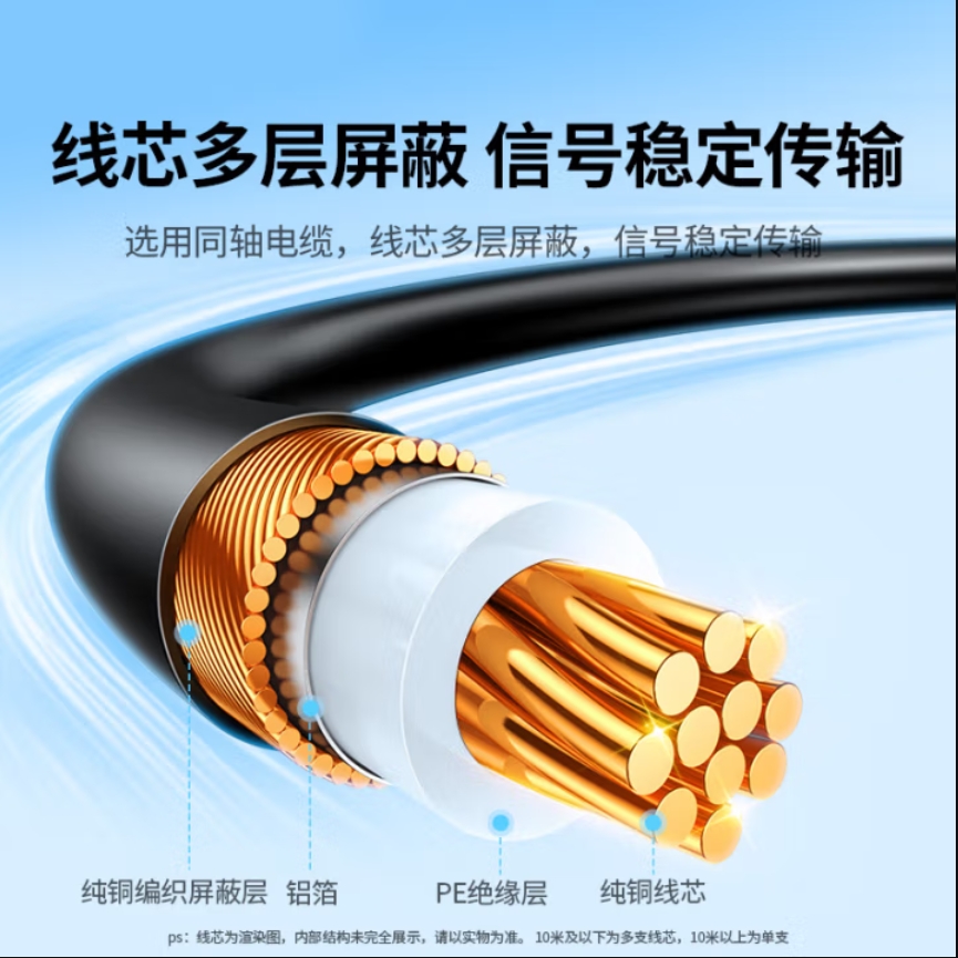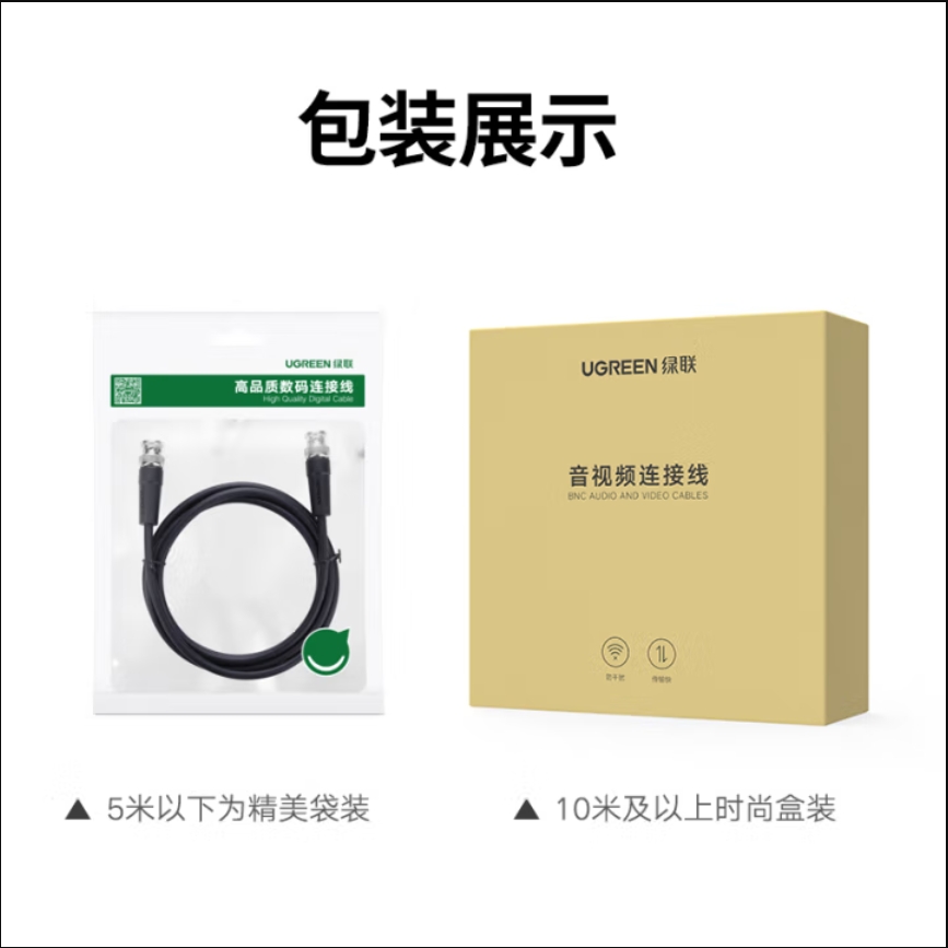 森淼办公 绿联 SDI线 75-3 5接口BNC高清HD线 纯铜线芯双屏蔽摄像头传输视频线硬盘录像机同轴线 HD-3米