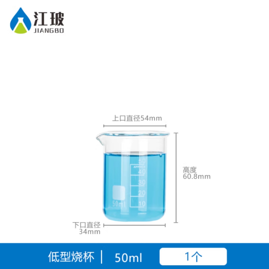 森淼办公 烧杯 实验器材 生物 化学 实验室 中性 耐高温 带刻度 高硼硅玻璃量杯 水杯 大烧杯 低型烧杯50ML