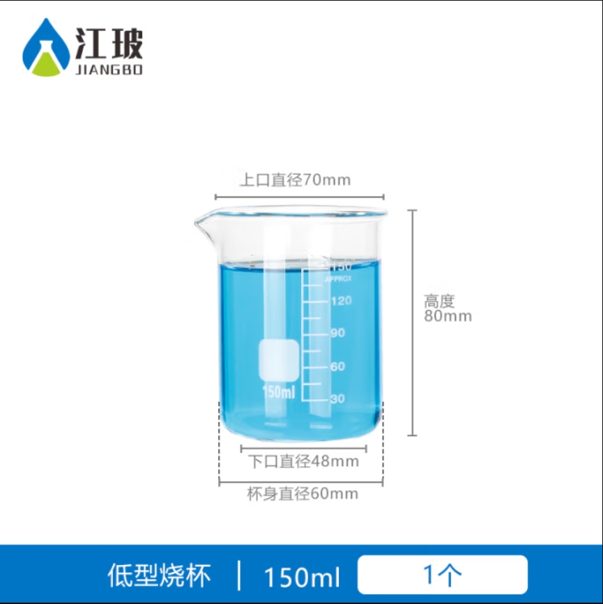 森淼办公 烧杯 实验器材 生物 化学 实验室 中性 耐高温 带刻度 高硼硅玻璃量杯 水杯 大烧杯 低型烧杯 150ML