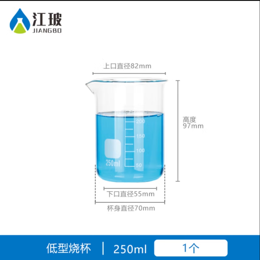 森淼办公 烧杯 实验器材 生物 化学 实验室 中性 耐高温 带刻度 高硼硅玻璃量杯 水杯 大烧杯 低型烧杯 250ML