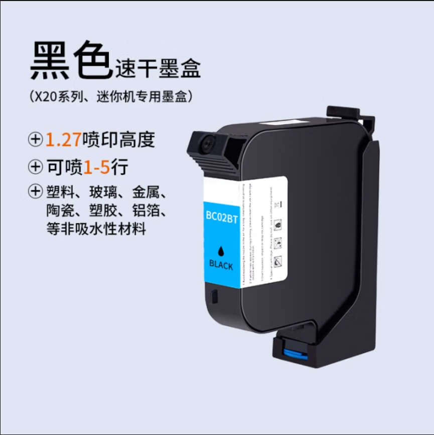 莱英办公 小妖鲸 小妖鲸手持喷码机墨盒 通用打生产日期标签二维码喷头一体式速干高附着力原装专用打码机黑色快干水性墨盒 BC02BT黑色速干墨盒