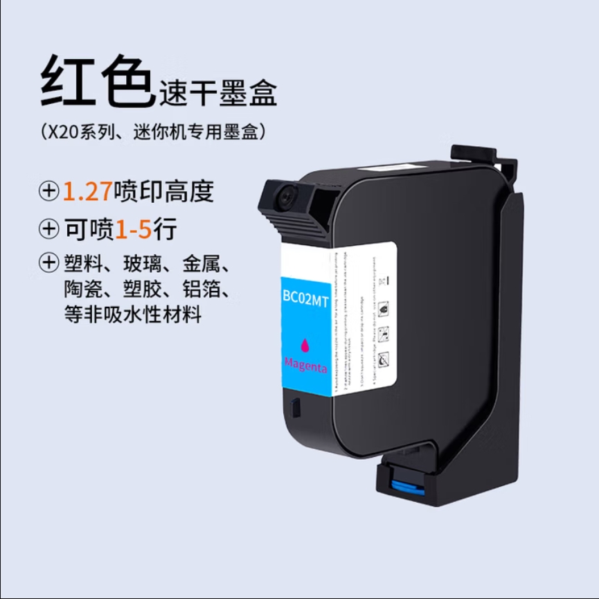 莱英办公 小妖鲸 小妖鲸手持喷码机墨盒通用打生产日期标签二维码喷头一体式速干高附着力原装专用打码机黑色快干水性墨盒 BC02MT红色速干墨盒