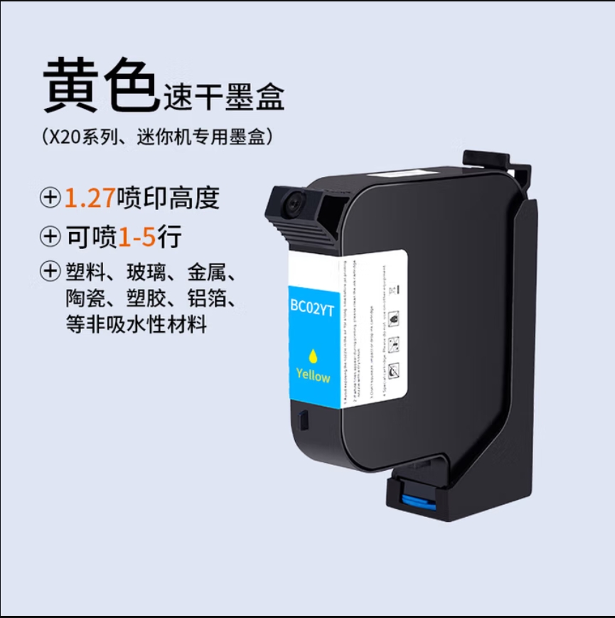 莱英办公 小妖鲸 小妖鲸手持喷码机墨盒通用打生产日期标签二维码喷头一体式速干高附着力原装专用打码机黑色快干水性墨盒 BC02YT黄色速干墨盒