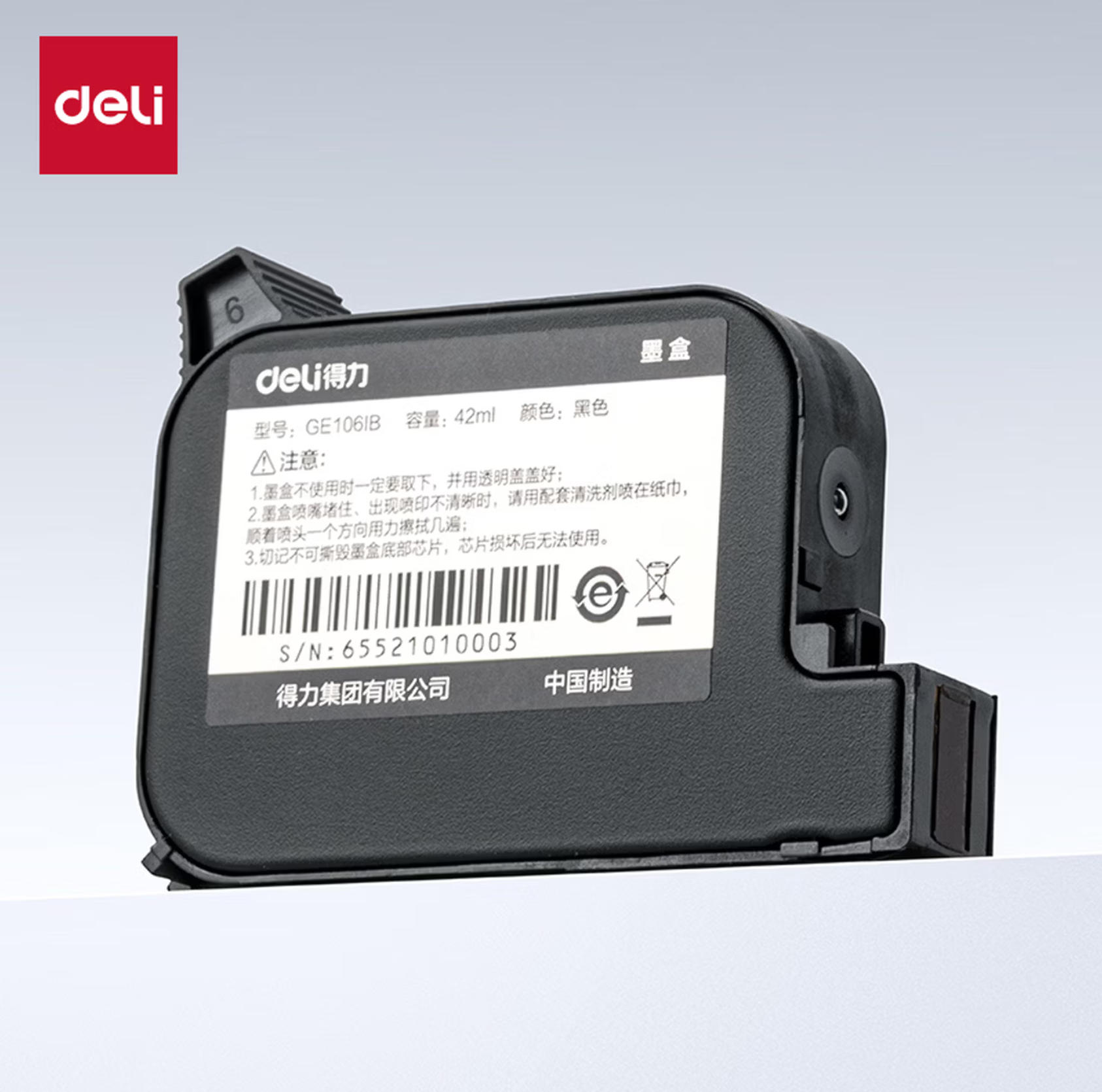 莱英办公 得力(deli)手持喷码机喷码枪设备配套打生产日期迷你在线式打码机喷墨打码机墨盒 原装黑色 GE106IB