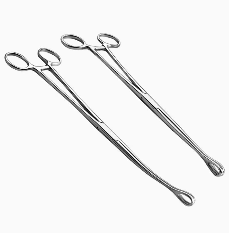 医用不锈钢海绵钳卵圆钳夹海绵钳直头弯头有齿拔火罐圆钳环钳25cm