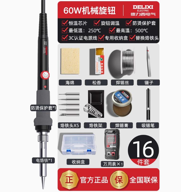 电气电烙铁家用小型维修焊接神器焊锡枪专业级电焊笔电洛铁60w15件套带万用表