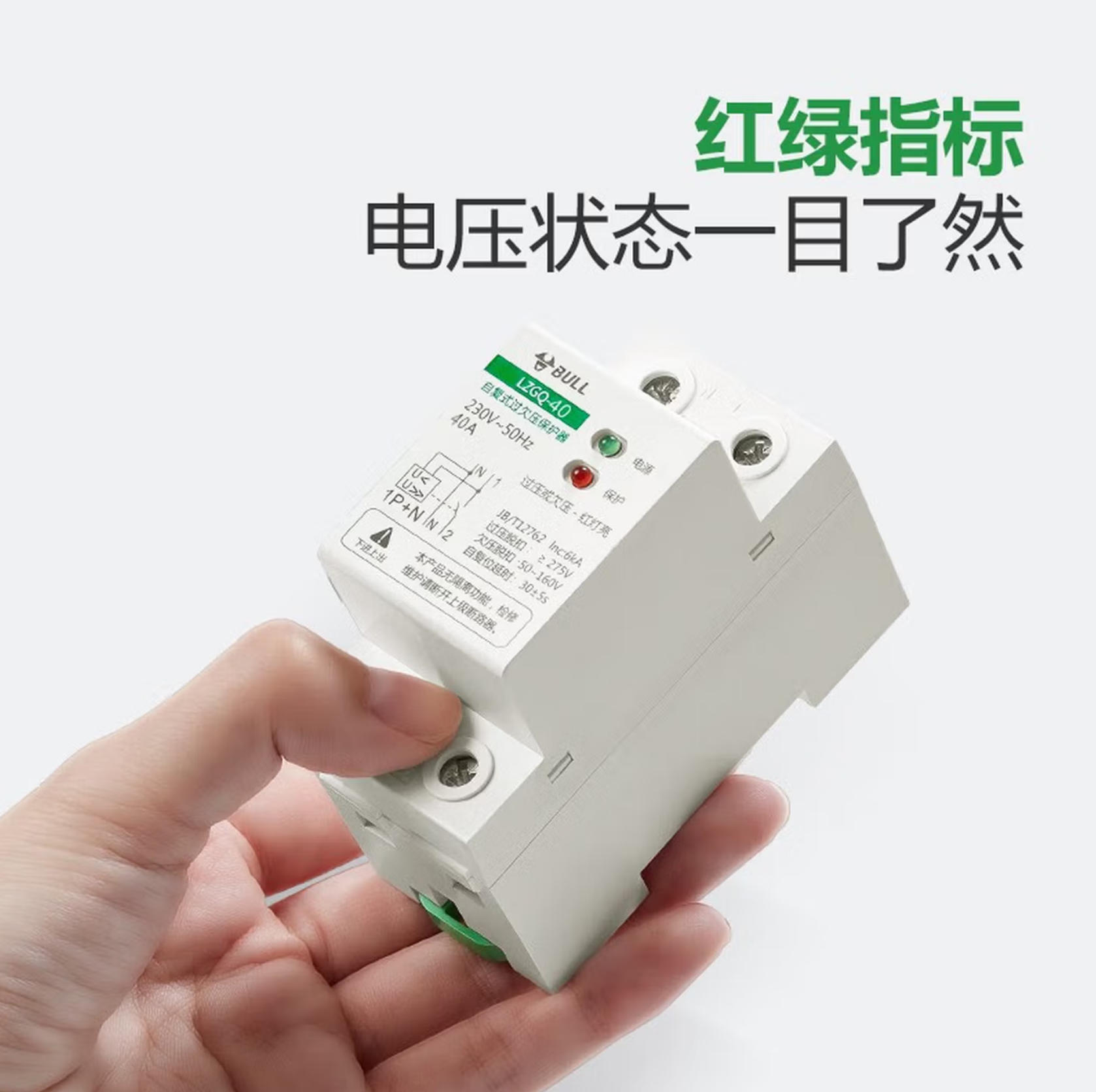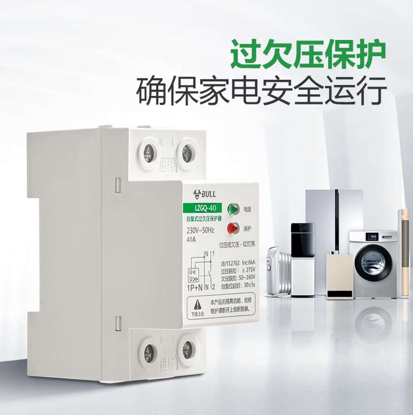 森淼办公 公牛(BULL) 空气开关 自复式过欠压保护器家用电源空开关LZGQ-63/1PN/40 40A