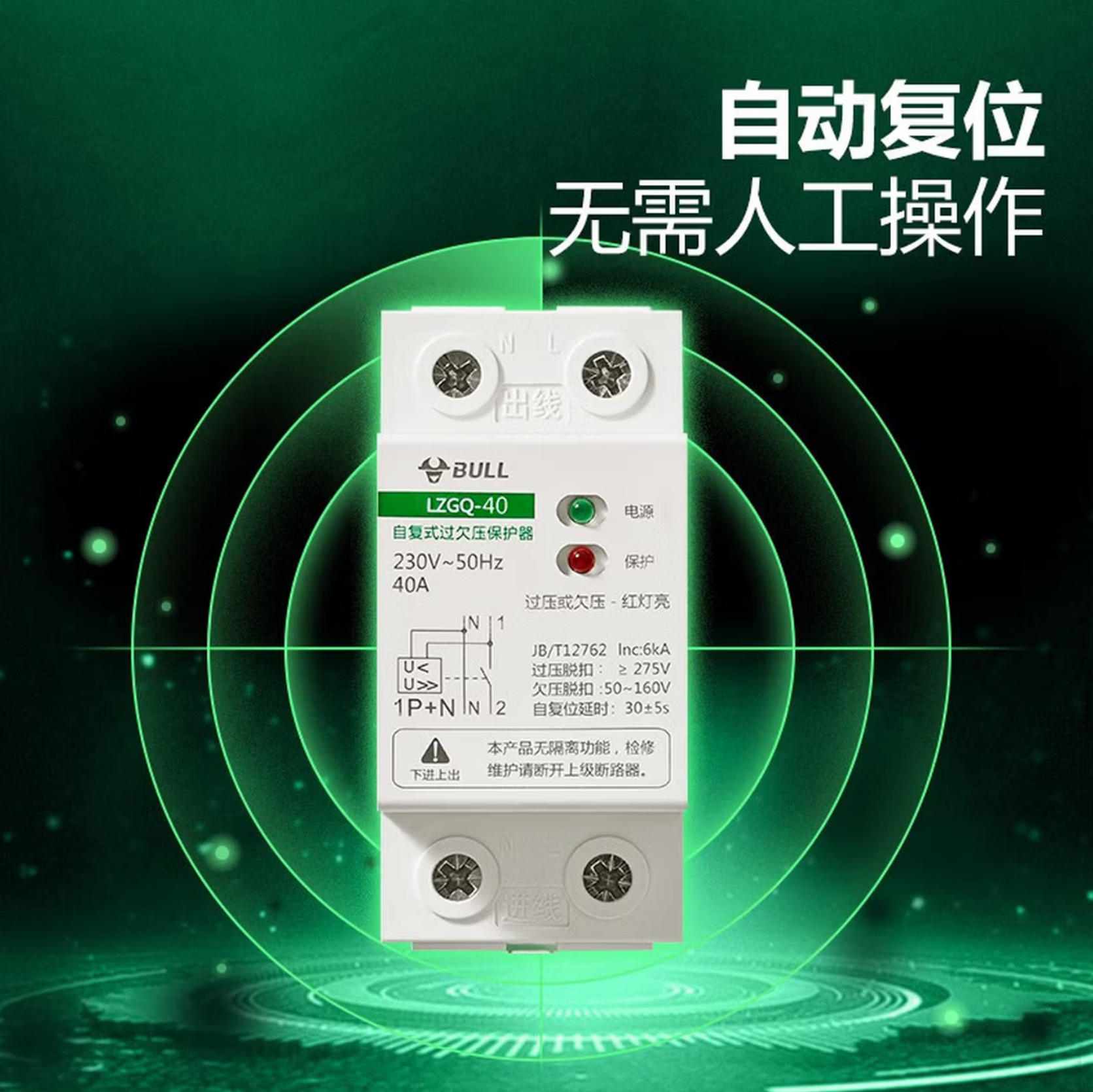 森淼办公 公牛(BULL)空气开关 自复式过欠压保护器家用电源空开关LZGQ-63/1PN/63 63A