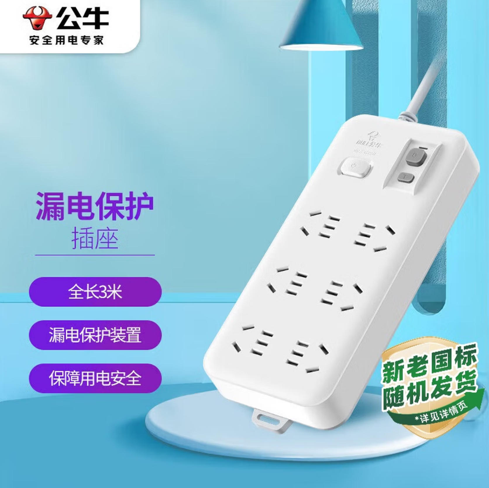森淼办公 公牛(BULL)漏电保护插座/插线板/插排/排插/接线板/拖线板 6位总控全长3米 GN-705