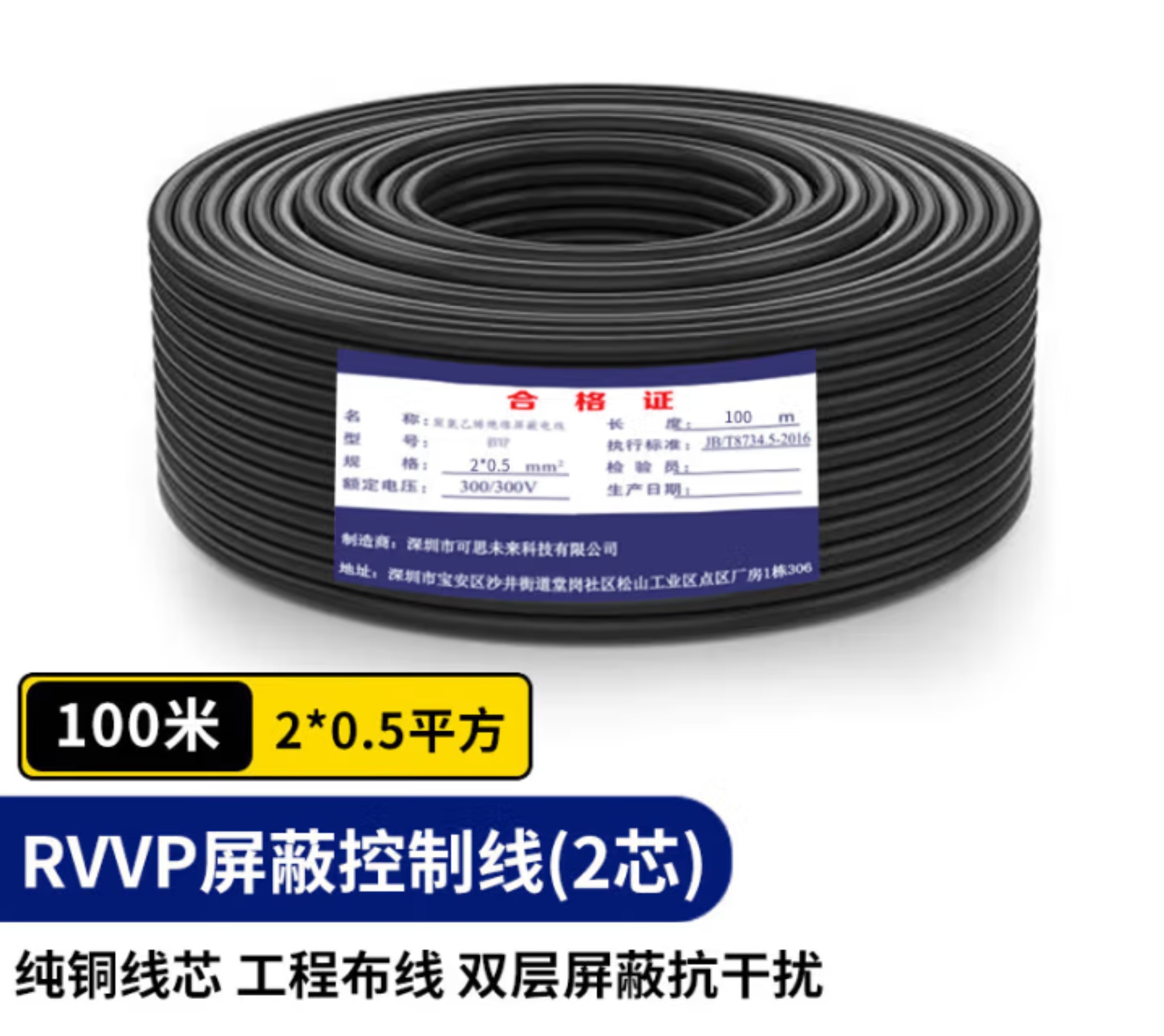森淼办公 信号控制线 2芯屏蔽控制线 通讯信号485控制线 RVVP 2*0.5平方 100米 KS-D-VP2X051