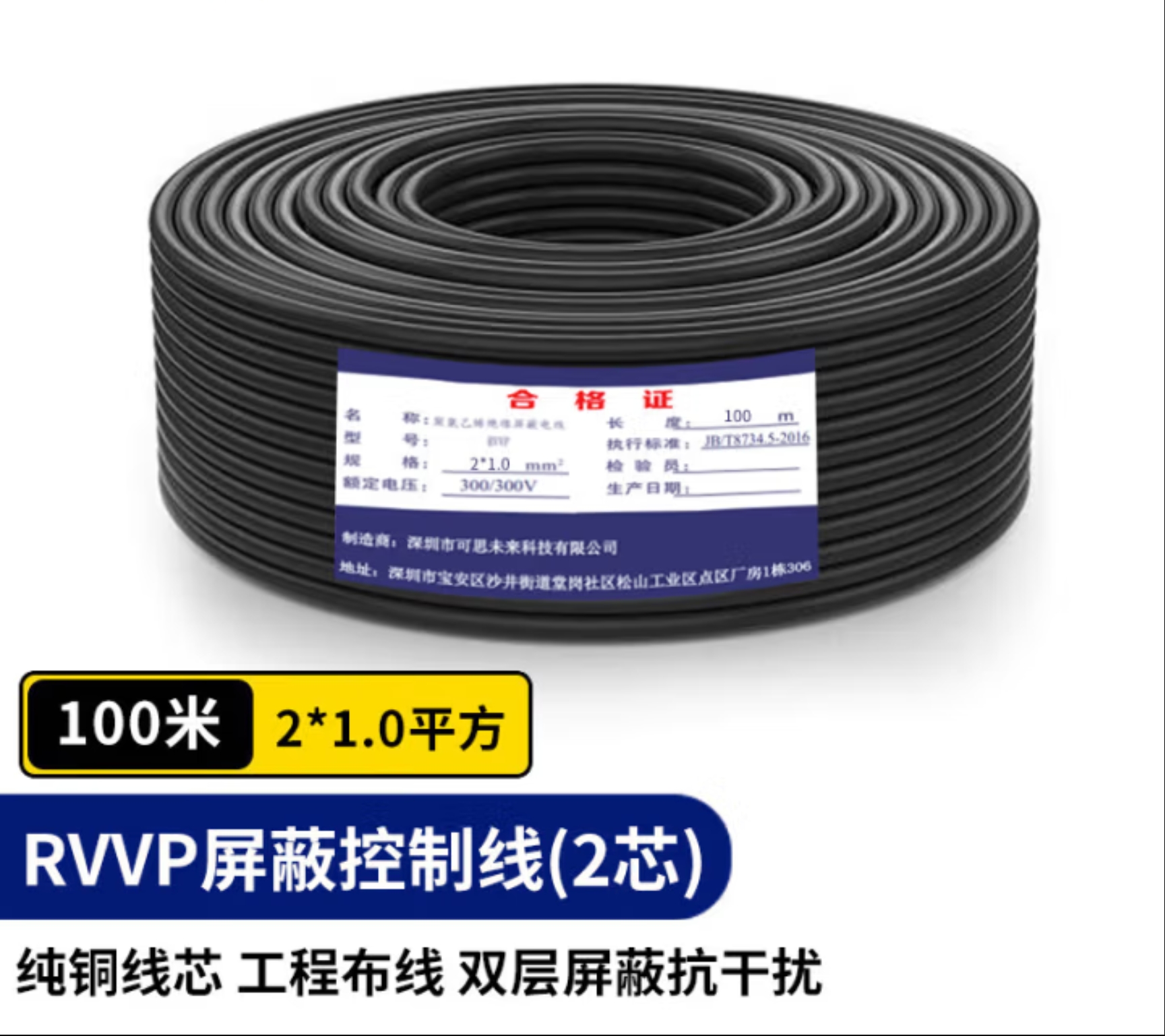 森淼办公 信号控制线 2芯屏蔽控制线通讯信号485控制线RVVP 2*1.0平方 100米 KS-D-VP2X101