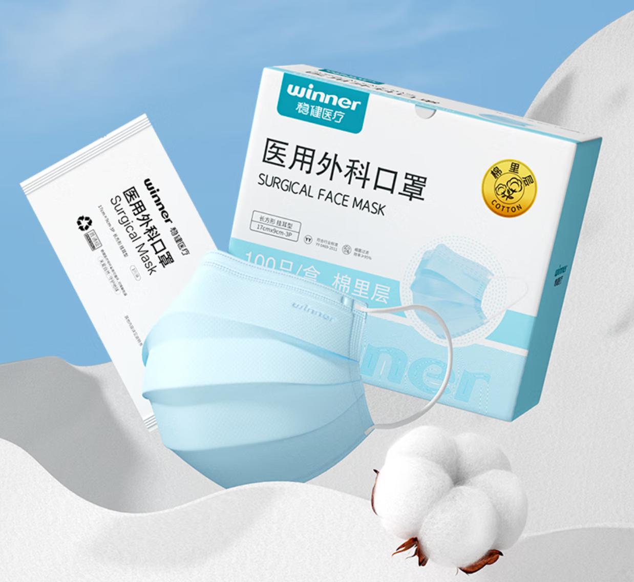 一次性医用外科口罩100只独立装棉里层亲肤透气