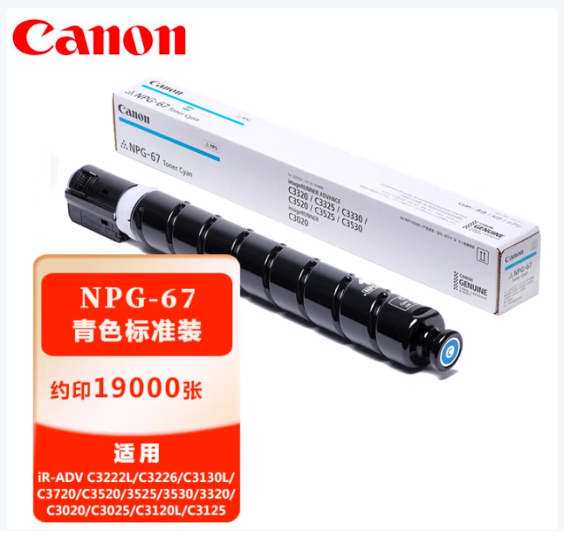 佳能(Canon)原装NPG-67 C青色墨粉盒标准装(iR-ADV C3520/3525/3530/3320/C3020/C3025/C3120L/C3125)(定点采购)