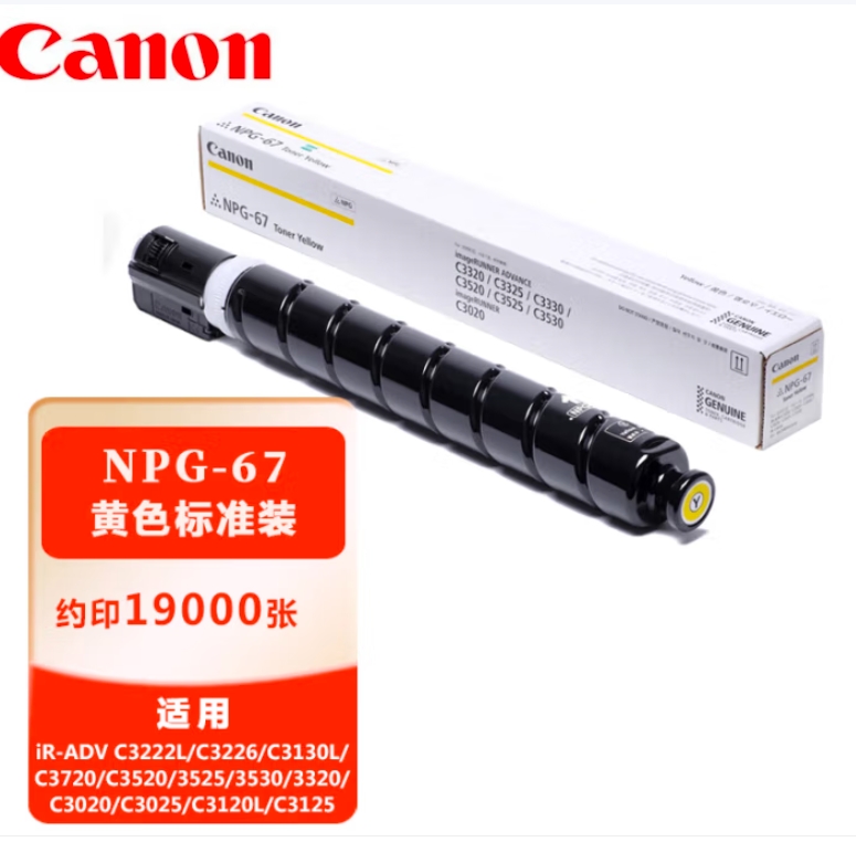 佳能(Canon)原装NPG-67 Y黄色墨粉盒标准装(iR-ADV C3520/3525/3530/3320/C3020/C3025/C3120L/C3125)(定点采购)
