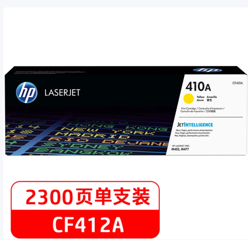 惠普(HP)410A(CF412A)原装硒鼓黄色单支装(适用hp M452DN/m377dw/M452DW/M452NW/477fnw)打印页数2300(定点采购)