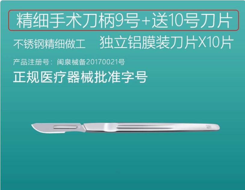 送刀片精细不锈钢医用手术刀柄9号柄+10号刀(10片)
