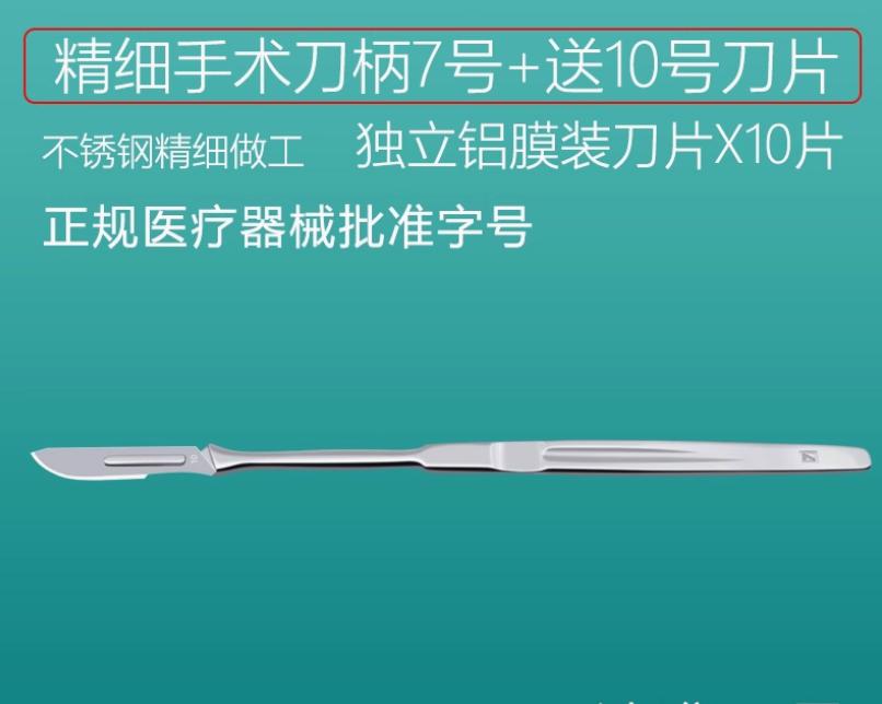 送刀片精细不锈钢医用手术刀柄7号柄+10号刀片(10片)手术刀片