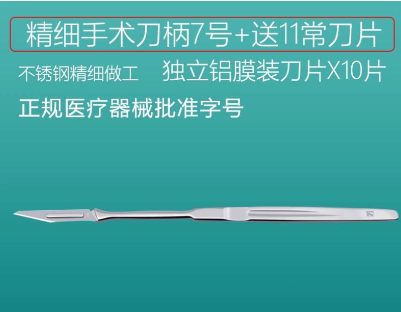 送刀片精细不锈钢医用手术刀柄7号柄+11号刀片常规(10片)手术刀片