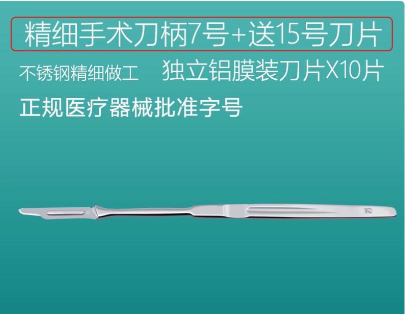 送刀片精细不锈钢医用手术刀柄7号柄+15号刀片(10片)手术刀片